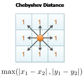 There are many metrics to calculate a distance between 2 points p (x1, y1) and q (x2, y2) in xy-plane. We can count Euclidean distance, or Chebyshev distance or manhattan distance, etc. Each one is different from the others.