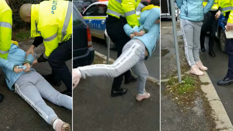 Într-o filmare postată pe Facebook se aude cum unul din cei doi polițiști îi spune femeiii să se calmeze: „nu te mai agita doamnă”. Însă aceasta este încurajată de reacția a două martore și opune rezistență.