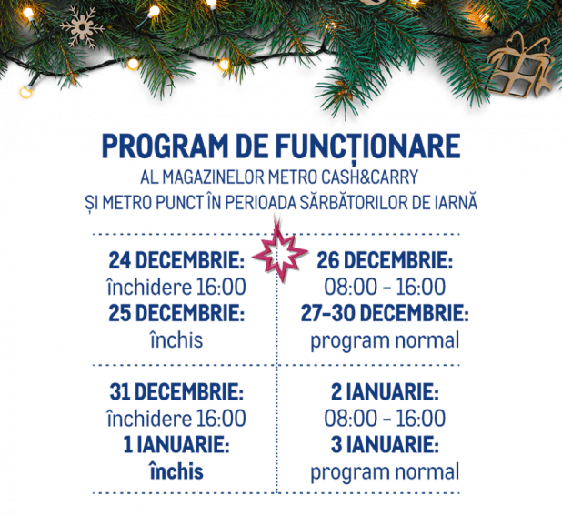- Sâmbătă, 26 decembrie: 09:00 – 17:00