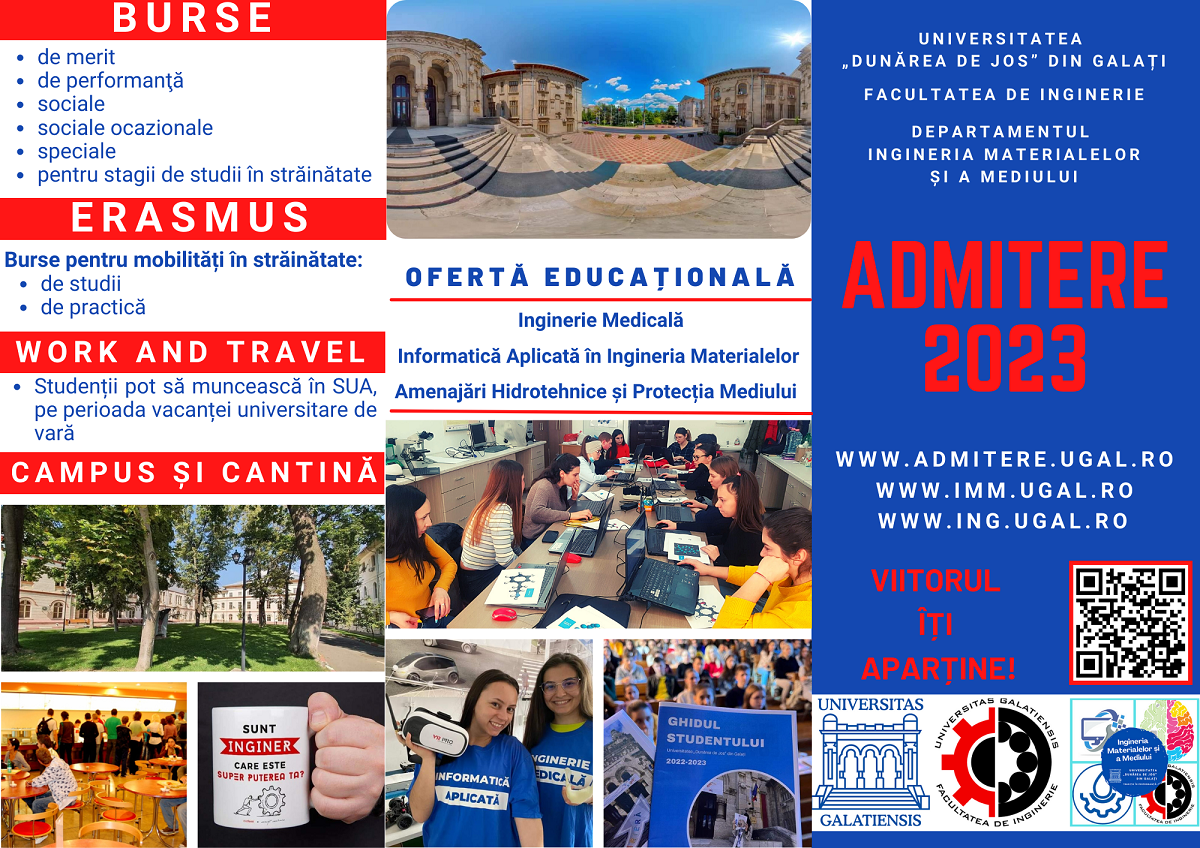 Inginerie Medicală, Informatică Aplicată și Amenajări Hidrotehnice la Galați! Admitere 2023!