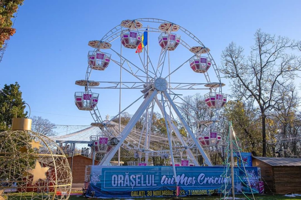 Deschiderea oficială a Orăşelului lui Moş Crăciun, din Grădina Publică din Galaţi, are loc joi, 30 noiembrie 2023. Organizatorii au pregatit pentru vizitatori atracţii precum: patinoar, în formă de cerc, în jurul fântânii arteziene, carusel şi roată panoramică, atelierul lui Moş Crăciun, Târg de Crăciun, show-uri culinare, cabină foto mobilă, spectacole şi concerte, show de lasere şi lumini.