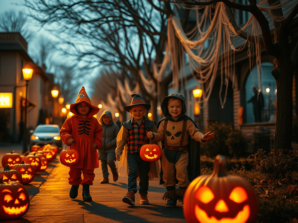 - Colindatul pentru dulciuri (Trick-or-Treating) – Această tradiție datează din perioada medievală, când oamenii cereau mâncare în schimbul rugăciunilor pentru sufletele morților. Astăzi, copiii se îmbracă în costume și merg din ușă în ușă pentru a primi dulciuri, menținând spiritul generozității(The HISTORY Channel)(World History Encyclopedia).