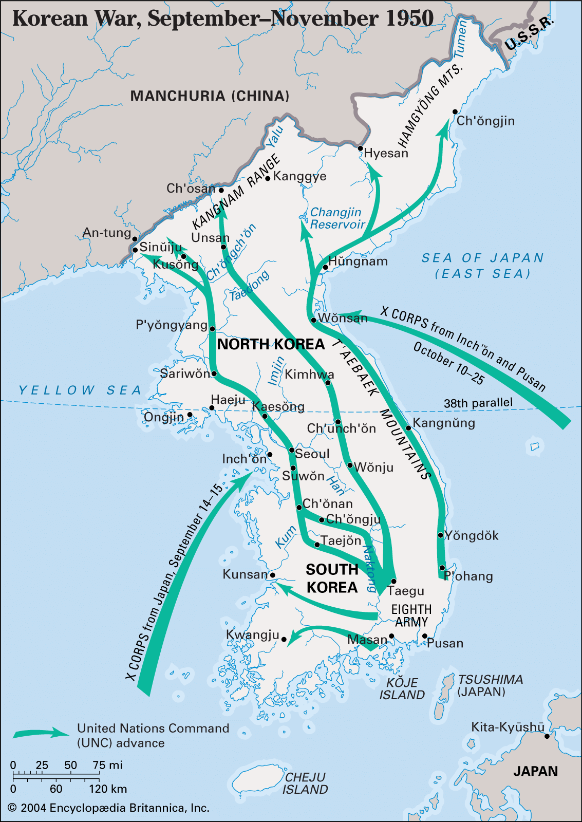 Contraofensiva ONU avea să fie lansată în septembrie 1950, iar succesul ei avea să schimbe drastic cursul războiului, forțând retragerea nord-coreenilor și eliberarea Seulului. Războiul din Coreea, care începuse cu o invazie rapidă și aparent irezistibilă din partea nord-coreenilor, era pe cale să devină un conflict prelungit și mult mai complex, cu implicarea tot mai profundă a superputerilor globale.