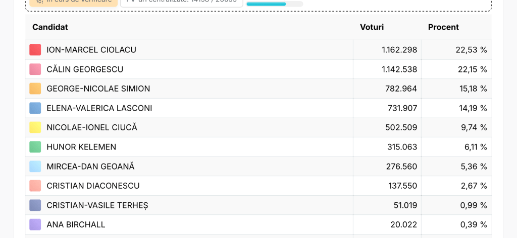 Rezultate partiale alegeri, dupa centralizarea a 71,5% din secțiile de vot