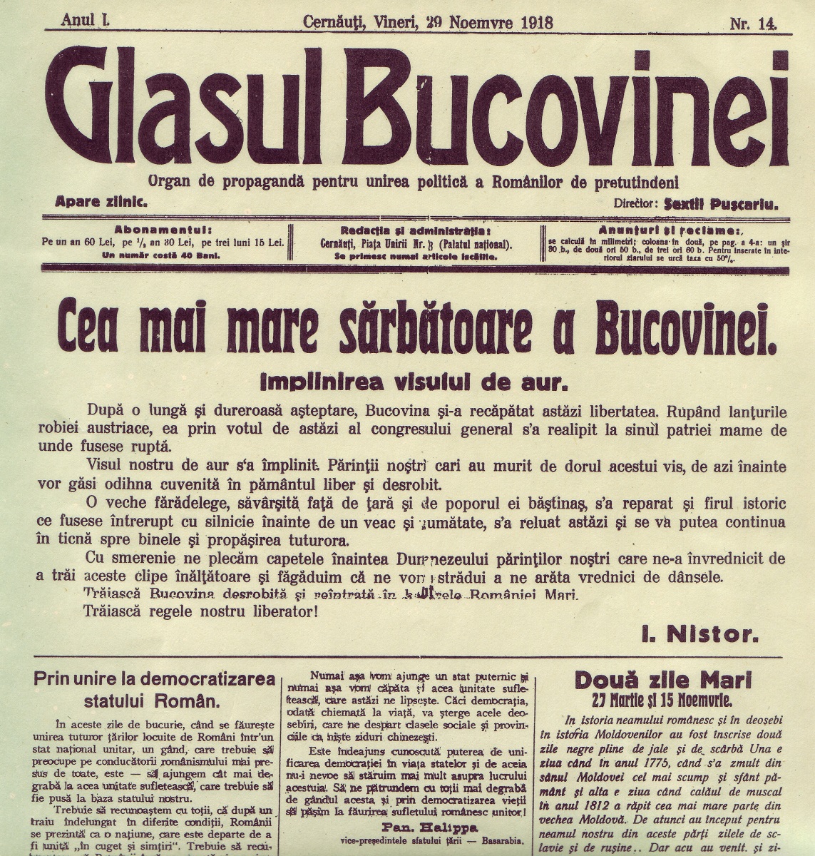 Presa a contribuit la popularizarea și validarea diplomatică a unirii. - Cum a reacționat Ucraina la Unirea Bucovinei?