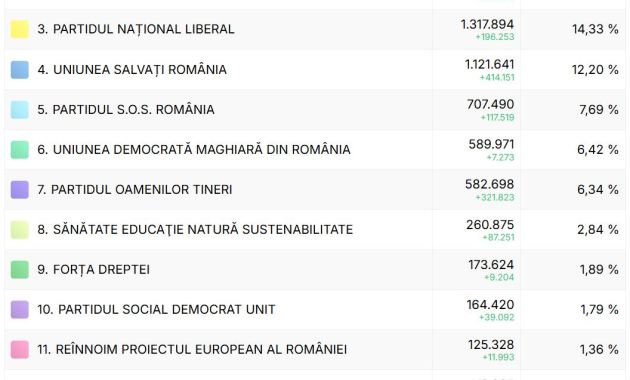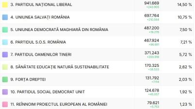 Rezultate partiale alegeri parlamentare, dupa centralizarea 99,22% din secțiile de vot. Pe cine trimit românii în Parlament?