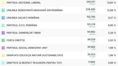 Rezultate partiale alegeri parlamentare, dupa centralizarea 17,84% din secțiile de vot
