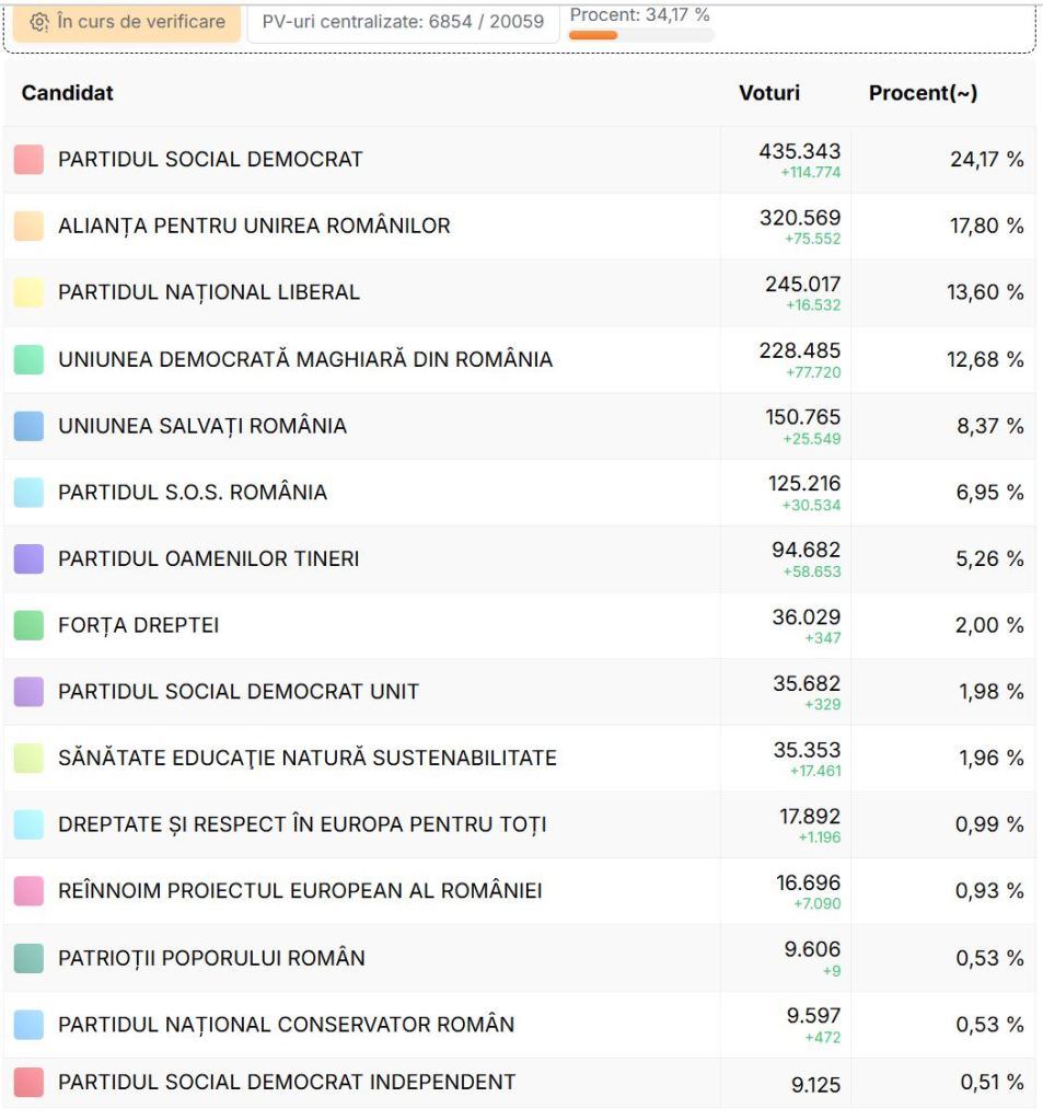 Rezultate partiale alegeri parlamentare, dupa centralizarea 34,17% din secțiile de vot