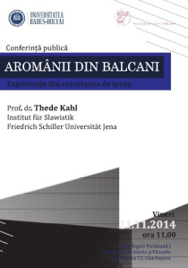 Despre aromânii din Balcani, cu Acad. prof. dr. Thede Kahl (Jena/Viena) Inițial publicat pe Gogea's Blog: Acad. prof. dr. Thede Kahl, Jena / Viena va susţine conferinţa Aromânii din Balcani – Experienţe din cercetarea de teren Vineri, 21 noiembrie… Cristian D. Obreja noiembrie 19, 2014 Scrie un comentariu