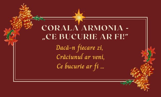 Corala Armonia – „Ce bucurie ar fi!” Corala Armonia – „Ce bucurie ar fi!” Versuri ”Ce bucurie ar fi” Dacă-n fiecare zi, Crăciunul ar veni, Ce bucurie ar fi, Dacă-n fiecare zi, Crăciunul ar veni, Mai buni […] Daniela Obreja decembrie 23, 2020 Scrie un comentariu