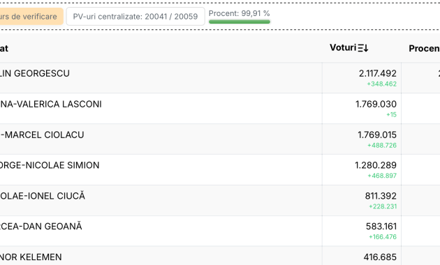 Rezultate partiale alegeri, dupa centralizarea 99,91% din secțiile de vot. Georgescu vs. Lasconi în turul 2 Rezultate partiale alegeri, dupa centralizarea 99,98% din secțiile de vot ocd8 noiembrie 25, 2024 Scrie un comentariu